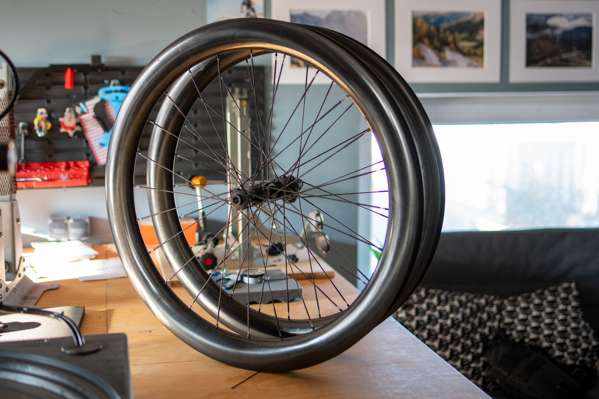 Masywne obręcze o profilu 55mm oraz szerokości wewnętrznej aż 32mm! Piasty DT Swiss 180 EXP oraz szprychy BERD.