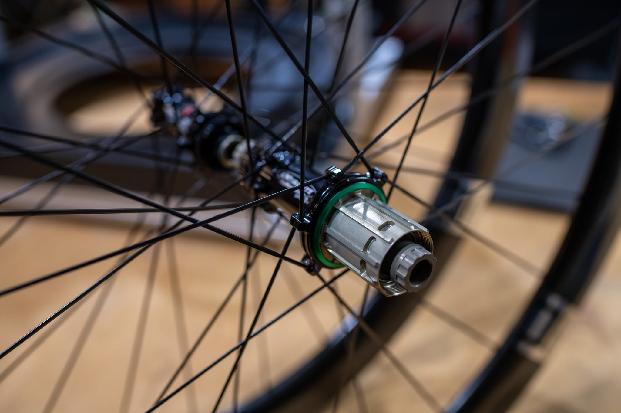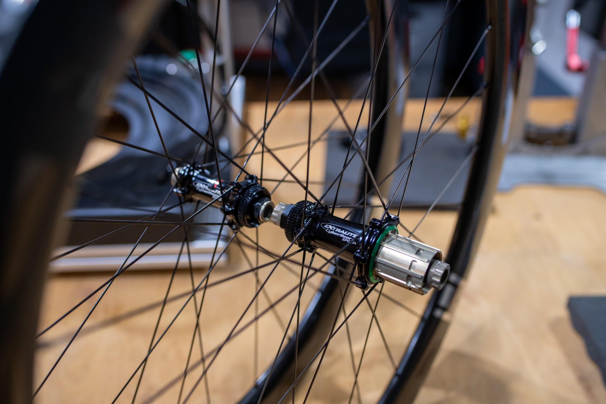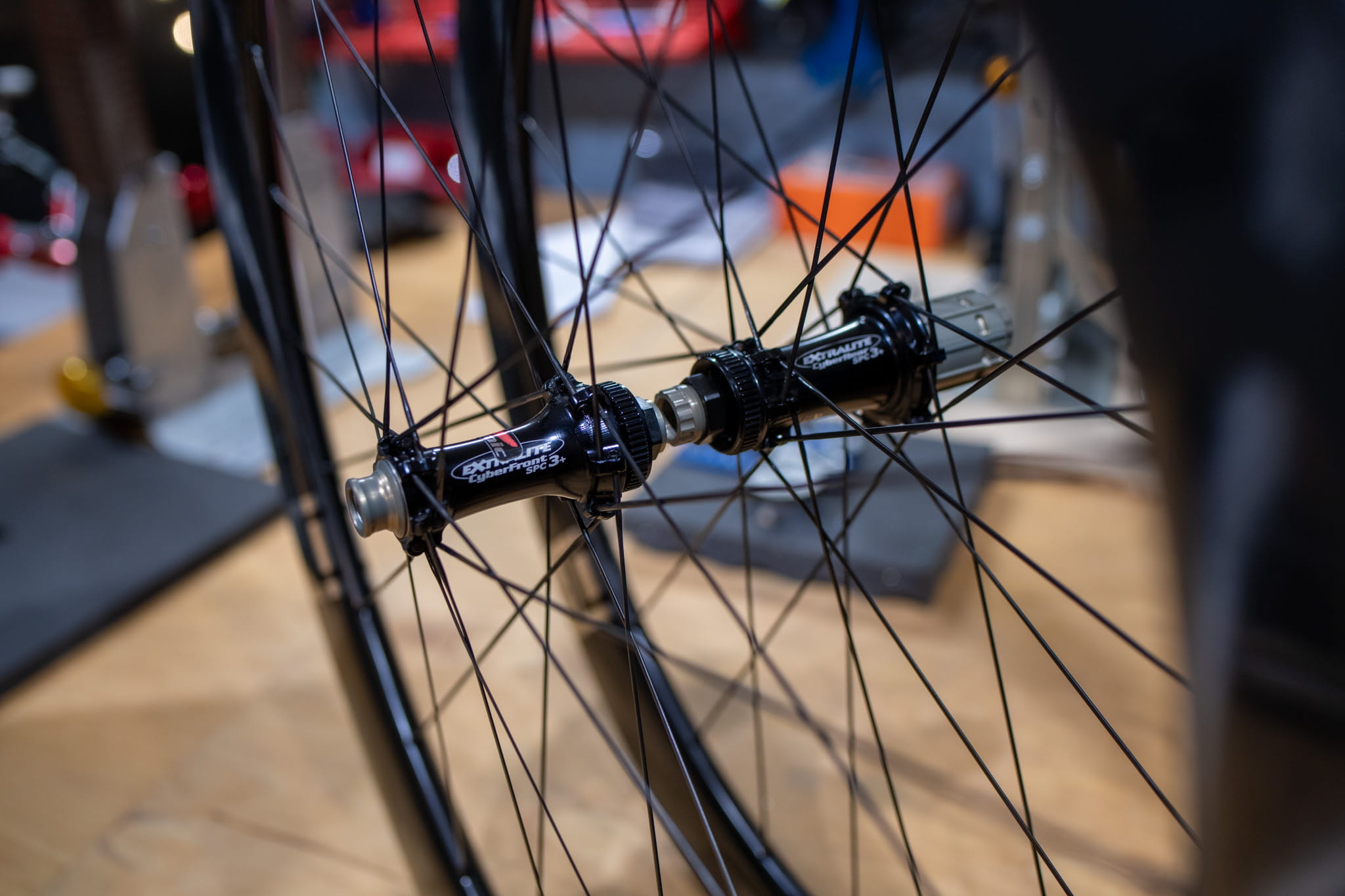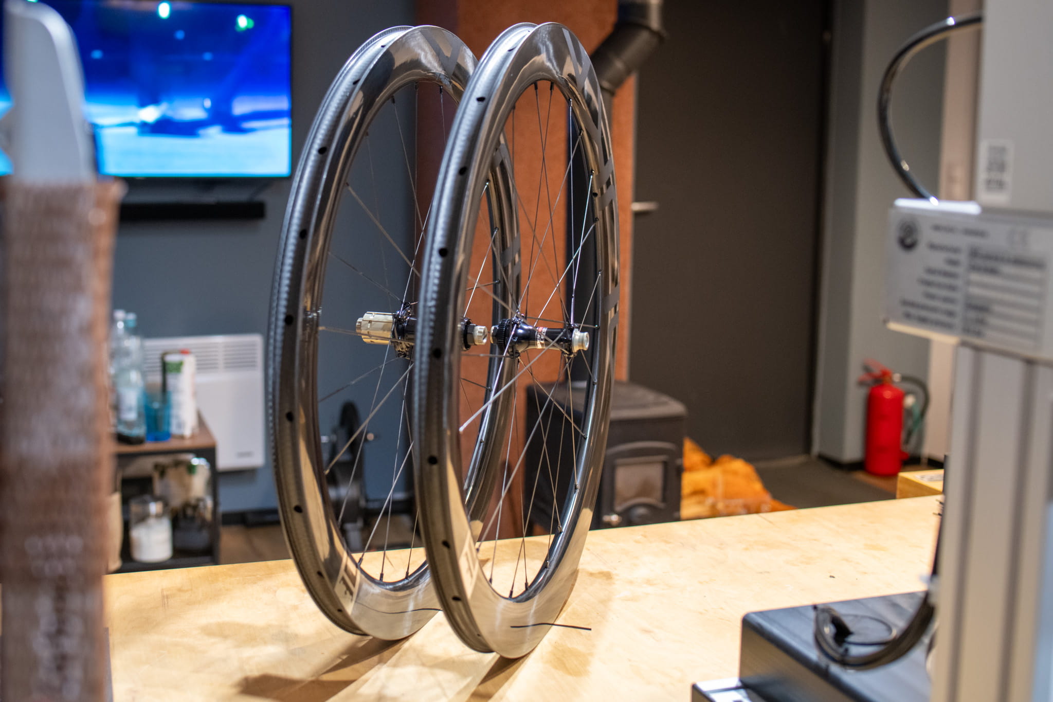 Priorytetem budowy tych kół była niska waga oraz szybkość. Stożek 56mm, szerokość wewnętrzna 23mm, włoskie piasty Extralite wyposażone w ceramiczne łożyska Hyper Ceramic. 24/24 szprychy cx-ray.