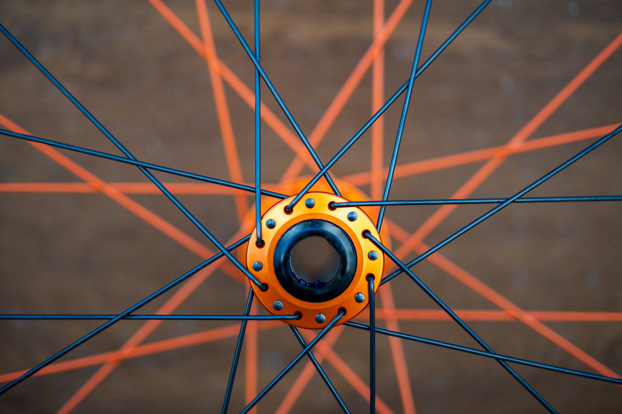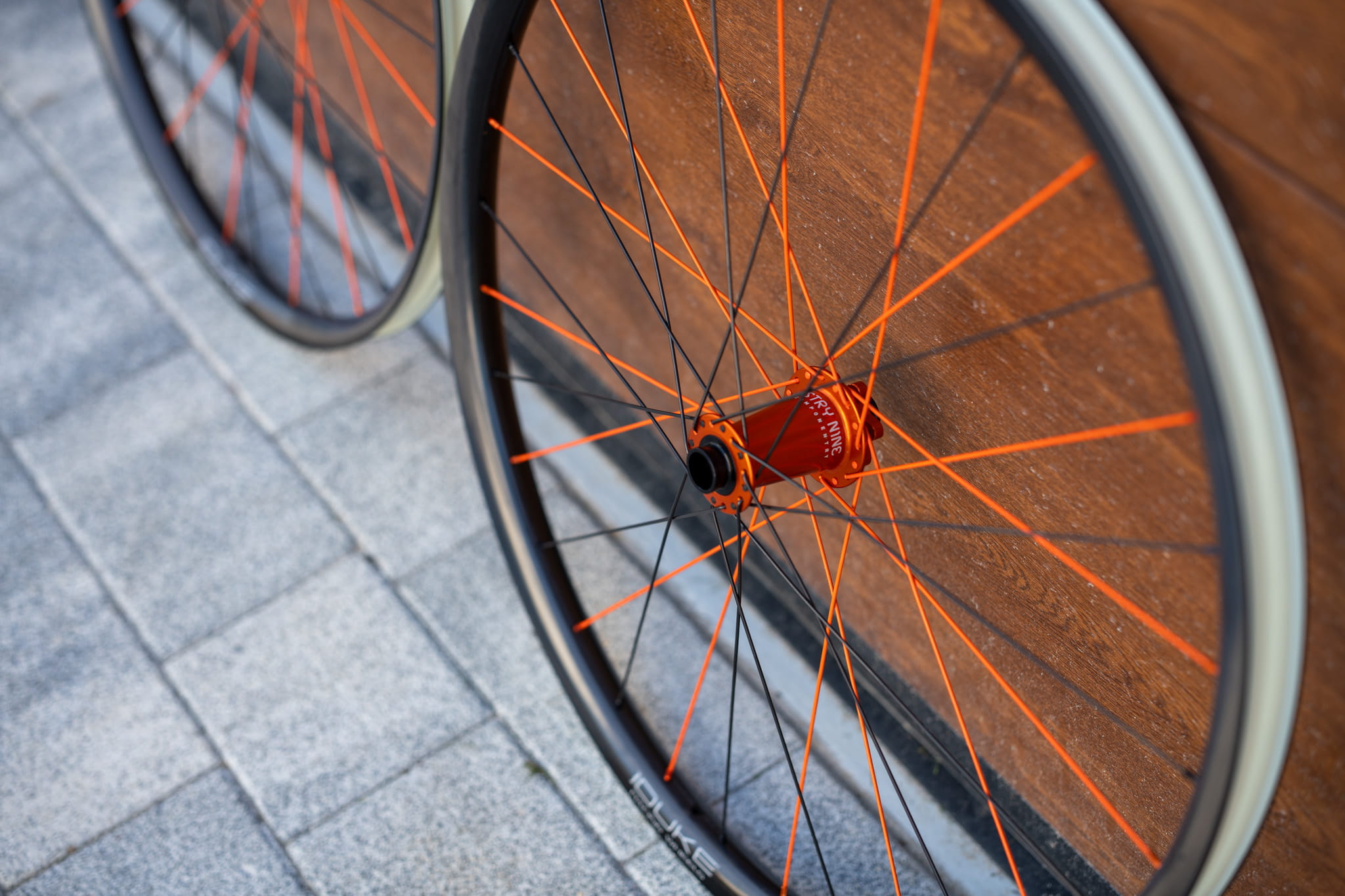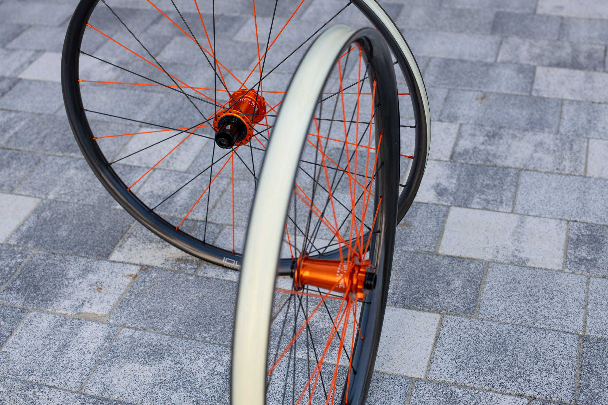 32/32 szprychy Sapim Race, jedna strona malowana na pomarańczowo (malowanie proszkowe)